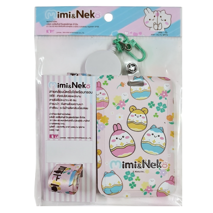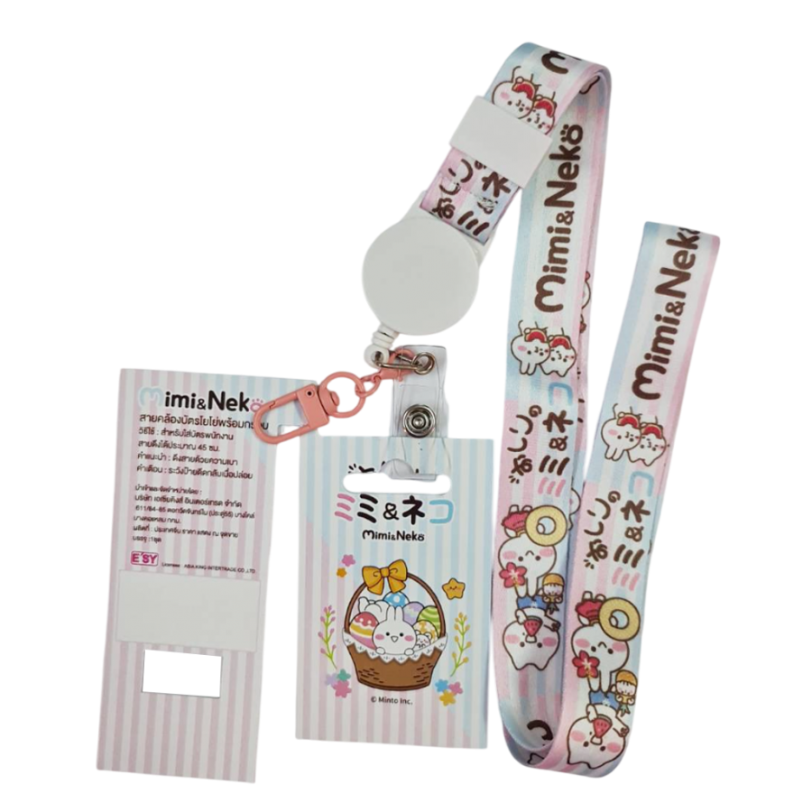 มิมิ สายคล้องบัตรโยโย่ พร้อมกรอบใส่บัตร MM-101(ลายนั่งด้วยกัน) MM-102(ลายตะกร้อดอกไม้)